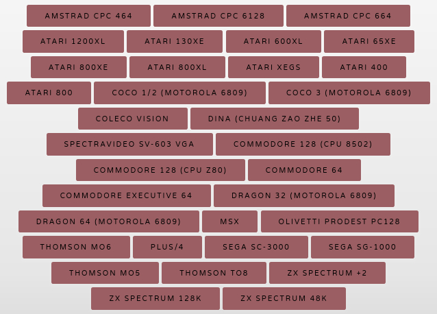 ein Maschinencode-Programm kompiliert. Die Grafik zeigt, welche Oldie-Computer bisher einbezogen sind, unsere Joyce ist leider noch nicht dabei: